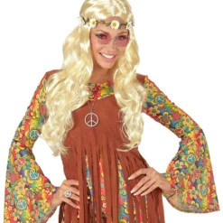 WIDMANN Curly Carla Pruik, Hippie / Middeleeuwen Blond Met Bloemen Hoofdband