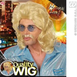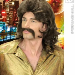 WIDMANN Pruik, 70s Man Grijs Sigaarrokende Voetbalanalist De Snor Johan Derksen Pruik