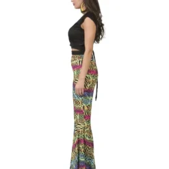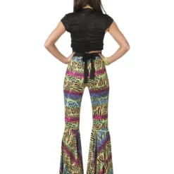 De 60s en 70s worden gekenmerkt door te gekke pratronen op de kleding en deze funky broek voor dames voldoet daar zeker aan. Dieren, zoals het luipaard en de zebra, staan afgebeeld op de broek met mega wijde pijpen. Zodra jij langsloopt dan worden de partygangers meegenomen op een safari en krijgen ze een kijken in het wilde nachtleven. Jij weet wel hoe je een feestje moet bouwen. Tikkeltje aso en fout? Welnee joh, juist spannend en grappig.