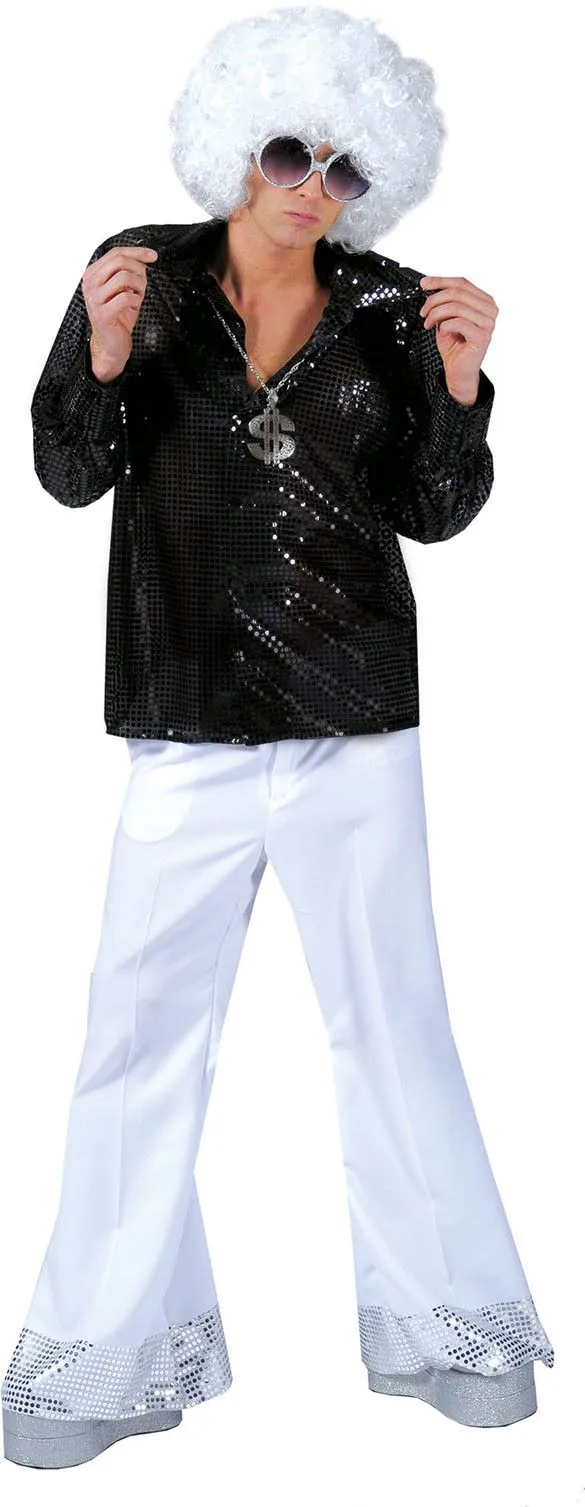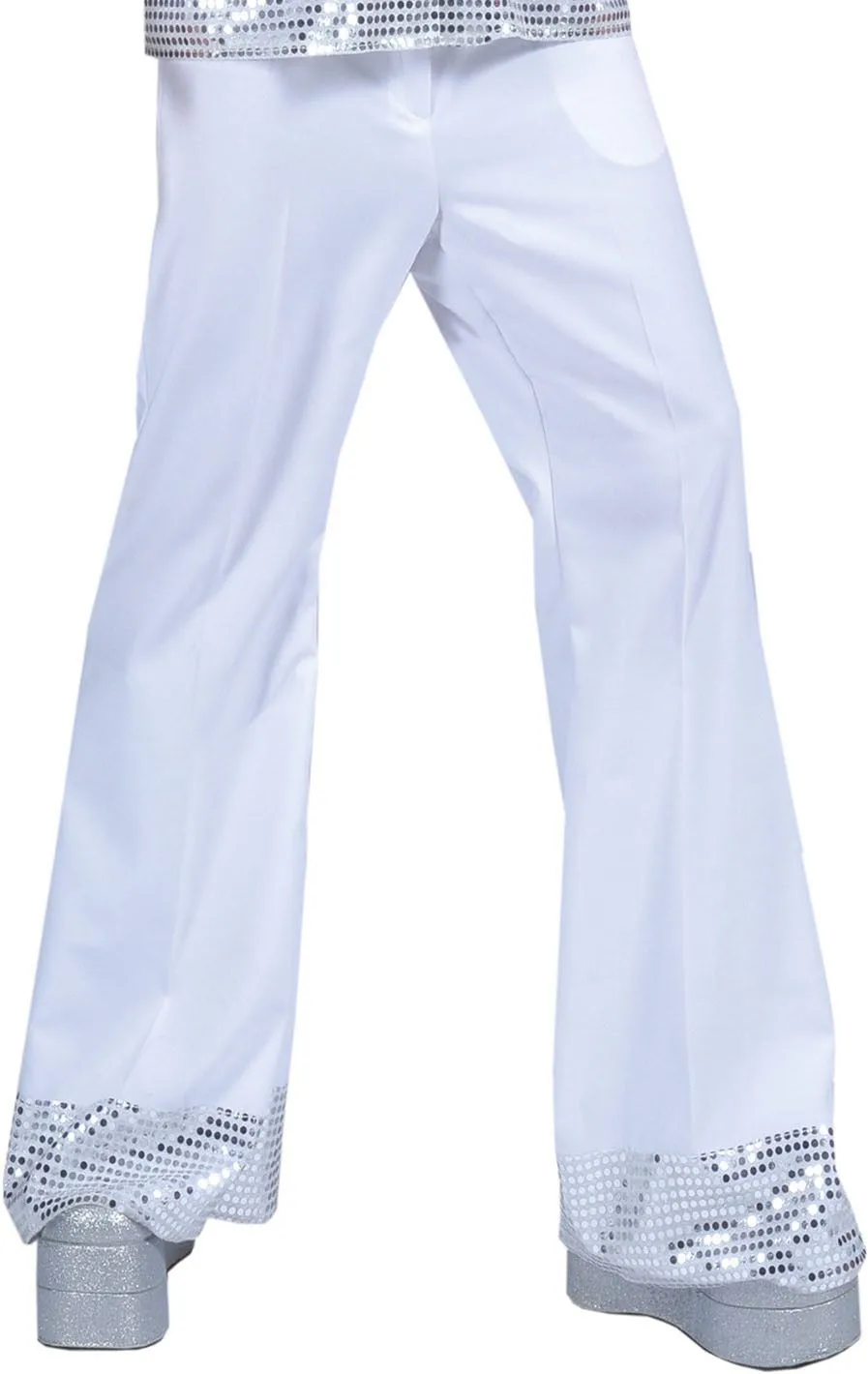 Goed man! Moet je dat kant zien aan de onderkant van de Disco Dancer Broek Wit kleding! Dat is zo cool. Daar steel je in de disco op het Jaren 80 & 90 feest ongetwijfeld de show mee. Het zit hem in de details en dat heb jij met de keuze voor dit kostuum goed begrepen. Dus pak je revers vast, maak een snelle draai en laat zien dat je nog steeds de vibe hebt.