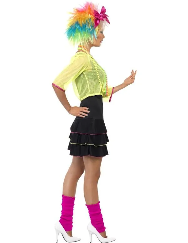 In dit 80s Madonna vrouw kostuum ben je de ster van de avond, op dat te gekke jaren 80 verkleedfeest. Die vrouw in Cyndi Lauper kleding kan niet aan je tippen. En zelfs dat meisje in sexy Diana Ross pak ben je in deze kleding met gemak de baas. En dat is toch ook niet de eerste de beste… Logisch natuurlijk, want ken jij een ster die in de jaren 80 net zo beroemd was als Madonna?